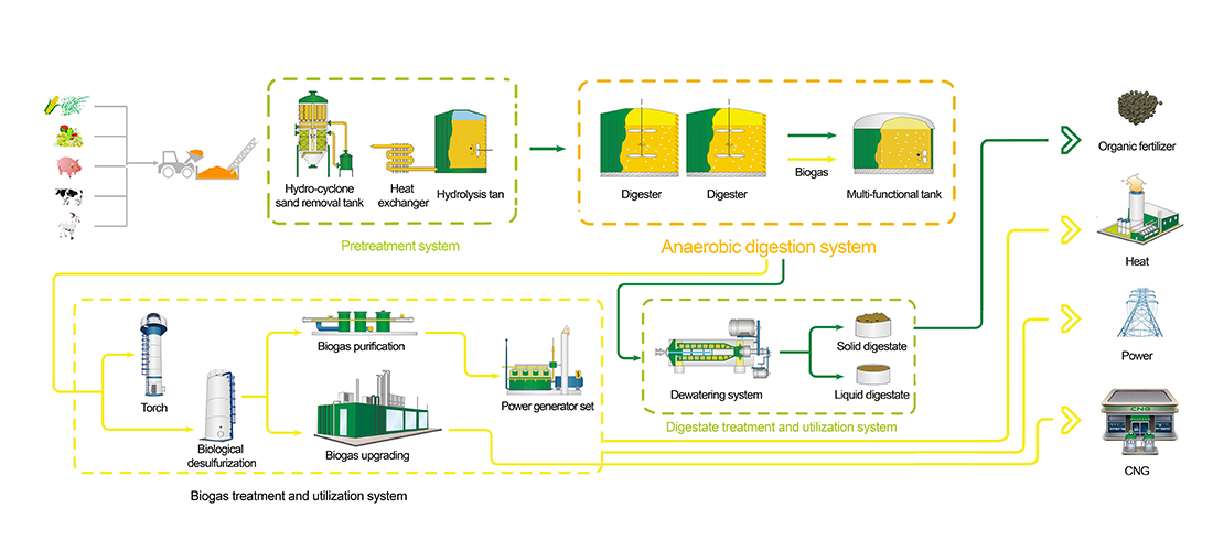 The agricultural waste to biogas technology launched by Fairyland can truly realize the resource and harmless disposal of such wastes, transforming waste into biogas and bio-organic fertilizer through the high-efficient degradation by the proprietary bacterium, which truly realizes the ecological recycle.