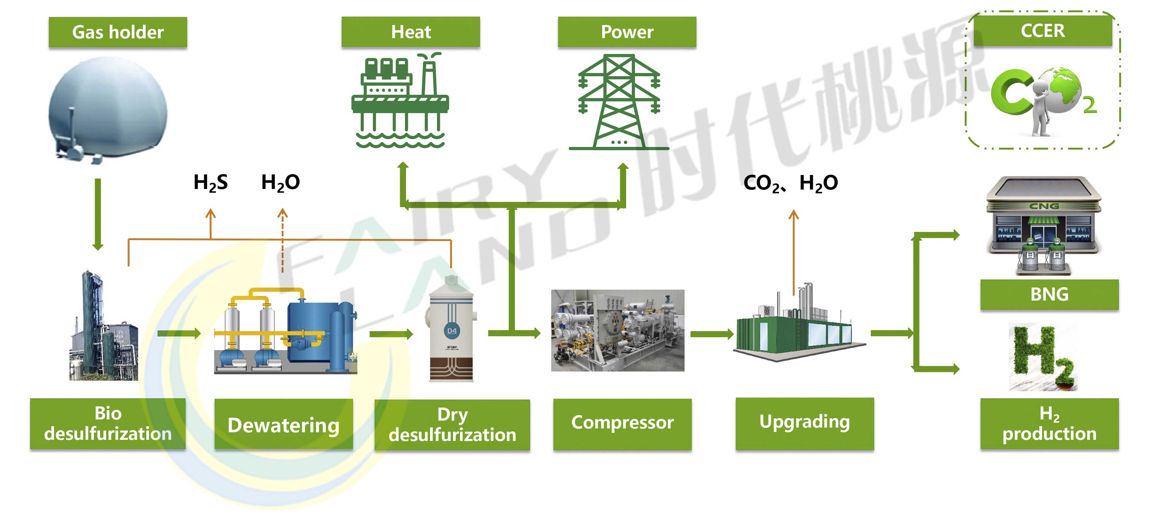 Biogas is generated by anaerobic digestion from organic waste. After desulfurization, dehydration and particles removal, it can be used to generate power and/or heater. It can also be upgraded to bio-methane.