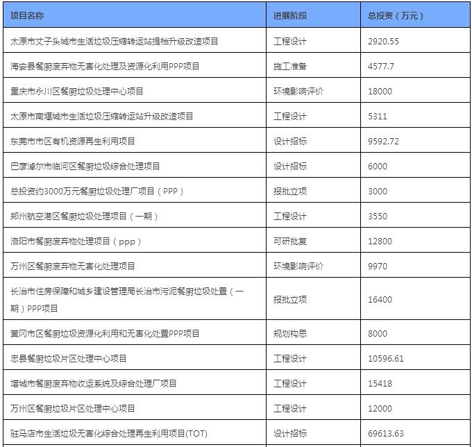 2016年12月近一個月全國擬在建餐廚垃圾項目匯總,涉及餐廚垃圾廢棄物處理、餐廚垃圾處理等環(huán)保項目。詳情如下: