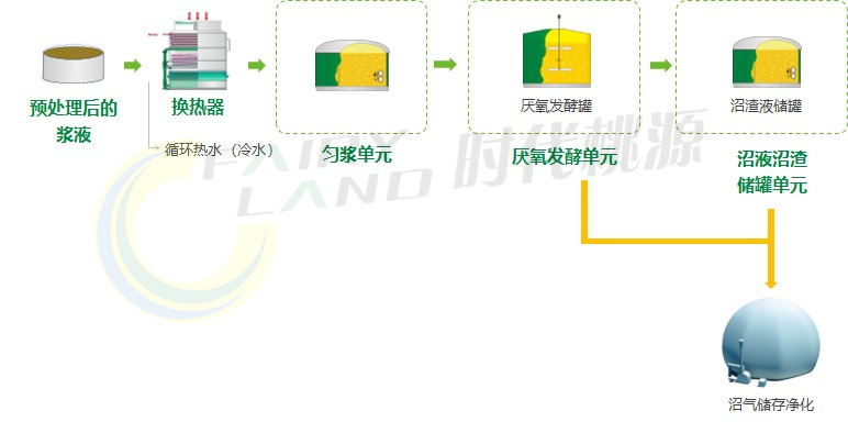 高含固全混式厭氧,該系統(tǒng)厭氧罐可承受15%的漿液進(jìn)料。滿足預(yù)處理后固渣和廢水混合漿液進(jìn)料,無(wú)需加水稀釋,降低系統(tǒng)用水量和后端沼液量。